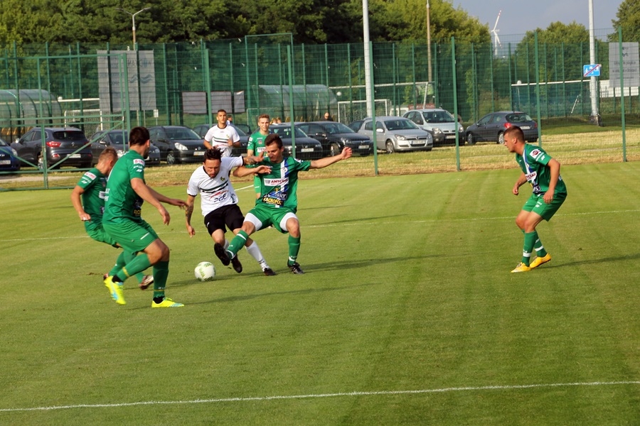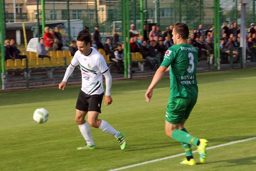 Wynik meczu otworzył zespół Mariusza Pawlaka, a dokładniej Dawid Flaszka. Nasz zawodnik wbiegając w pole karne zamknął akcję i celnie główkując wykorzystał precyzyjne dośrodkowanie z rzutu wolnego Patryka Janasika. Kilka minut później wynik na 2:0 mógł podwyższyć Piotr Giel, ale będąc ’sam na sam’ z golkiperem gości uderzył za lekko i obrońcy KKS zdołali wybić futbolówkę.